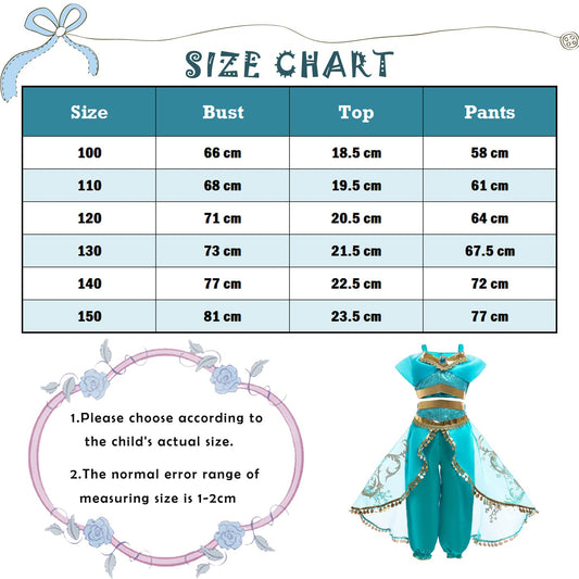 Costum de prințesă Jasmin pentru fete cu perucă - Costum Aladdin pentru copii, rochie de prințesă pentru Crăciun, zi de naștere, petrecere, Halloween, carnaval, cosplay.