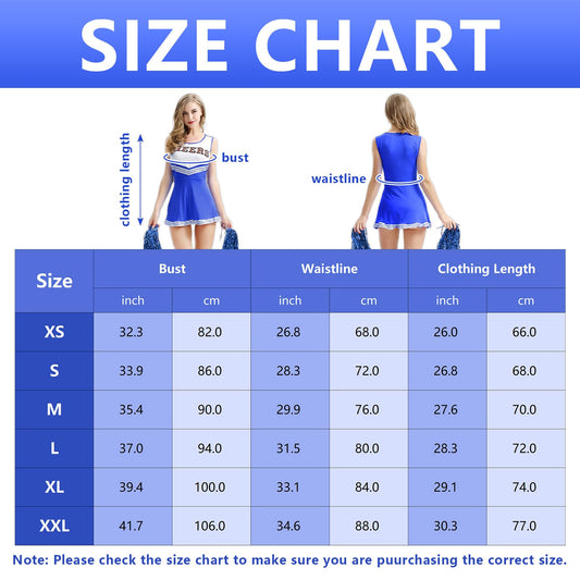 Costum de Cheerleader pentru Femei, Costum de Cheerleader cu Pomponi, Uniformă de Cheerleader, Costum de Halloween pentru Adulți pentru Cosplay pentru Fete (Albastru, XL)