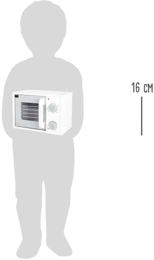 Microunde din lemn pentru copii Small Foot, cu butoane rotative și ușă cu închidere magnetică, recomandată de la 3 ani, 11184, multicolor.