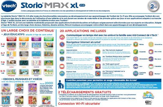 VTech – Tablet Storio Max XL 2, Roz – Tabletă pentru copii de 7 inch cu funcție de învățare – versiune în franceză