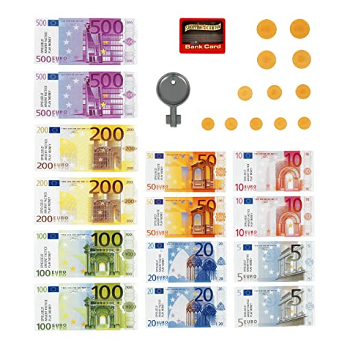 Simba 104525700 - Casă de marcat cu scanner, calculator, bandă de rulare, cititor de carduri, alimente, 16 monede, 13 bancnote, 36 luni - 8 ani