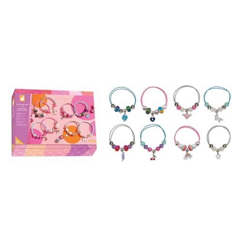 Janod - 8 Bijuterii Feel Good de Facut Acasă - Set DIY pentru Brățări - Activitate Creativă pentru Copii - Învățare a Abilităților și Concentrației - Recomandat de la 8 Ani - J09133