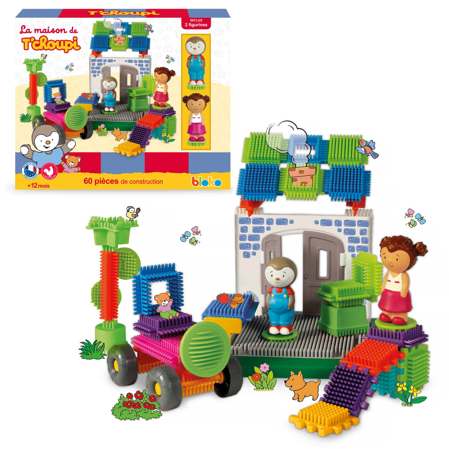 BLOKO | Casa lui T'choupi | 60 Piese de construcție și 2 Figurine 3D | Creativitate | Forme și construcții variate | Design Franța | Cadou pentru copii de la 1 an | 503741