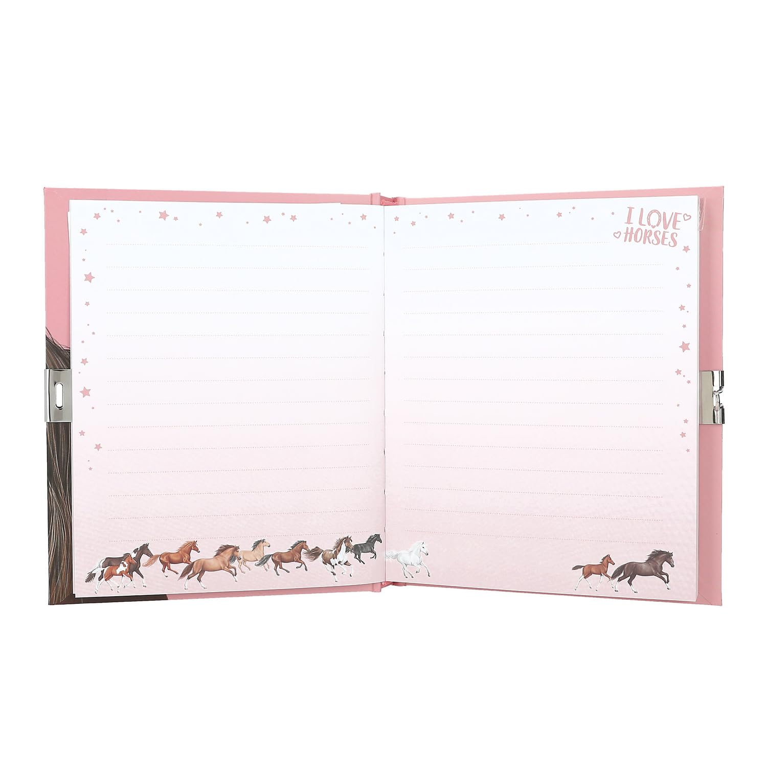 În acest jurnal Miss Melody, gândurile și secretele sunt păstrate în siguranță. Cartea este securizată cu un mic lacăt și poate fi deschisă cu cheia corespunzătoare. Cele 192 de pagini fin linii și frumos ilustrate oferă fetițelor mult spațiu pentru a desena, a crea și a nota experiențe și sentimente. Caietul cu motiv de cai are dimensiunea de aproximativ 19 x 16 x 3 cm și este o idee minunată de cadou pentru ziua de naștere sau Crăciun.