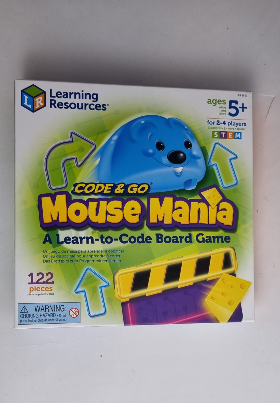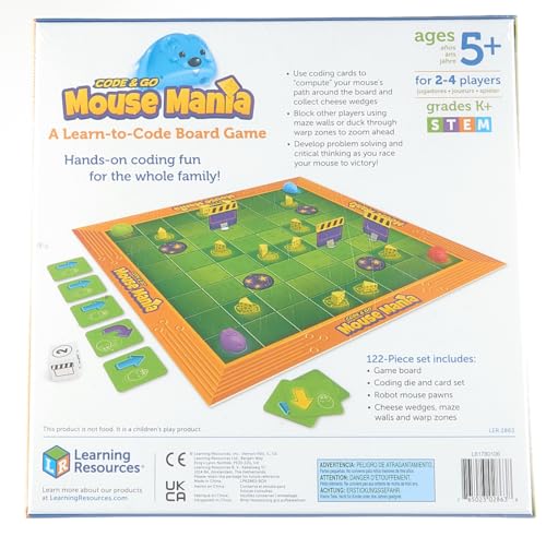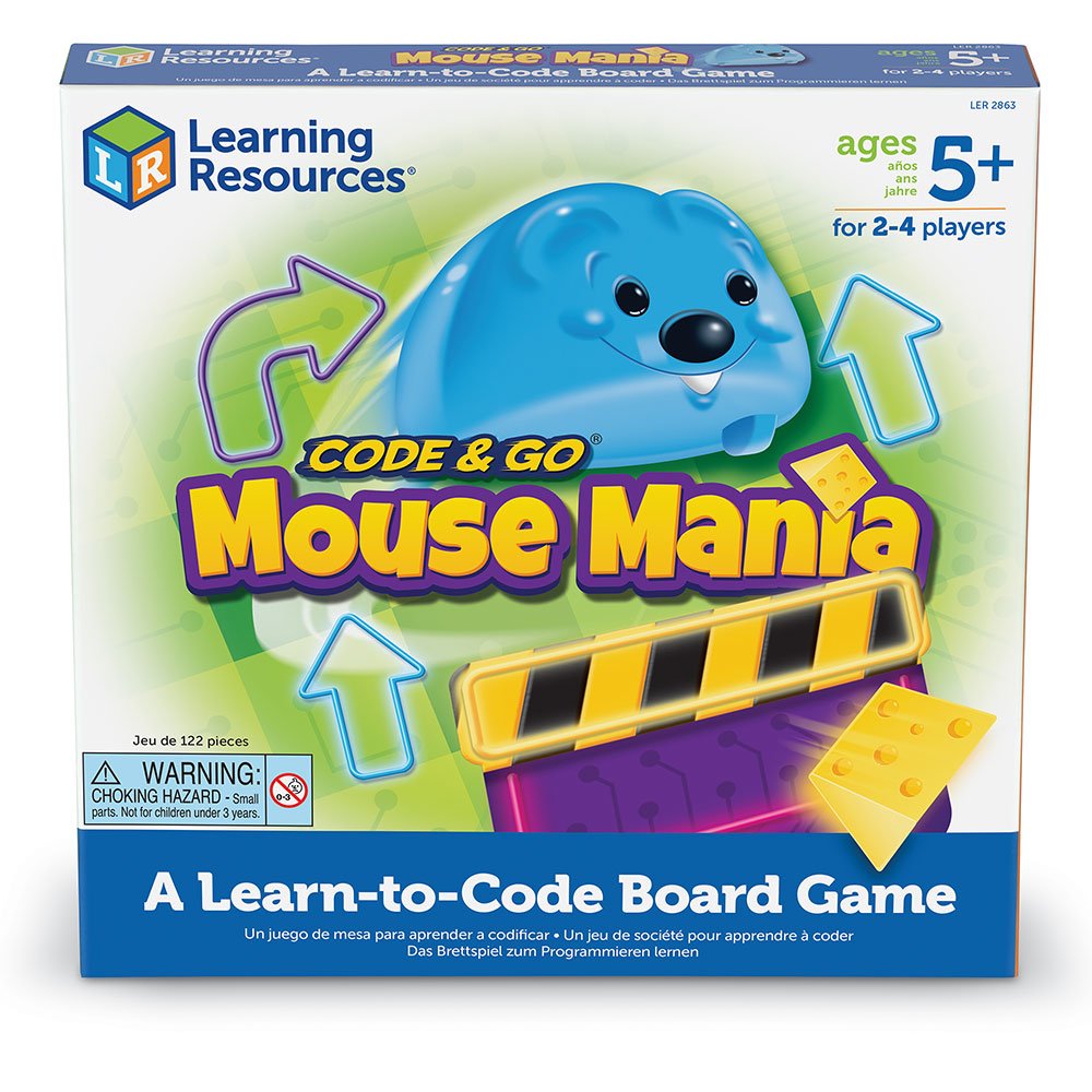 Jocul de masă Ratón Manía de Code Go de la Learning Resources este special conceput pentru a stârni interesul copiilor în știință, tehnologie, inginerie și matematică (STEM). Acest joc de masă îi ajută pe cei mici să exploreze conceptele de bază ale programării în timp ce se distrează. Jucătorii vor arunca zarul și vor lua numărul corespunzător de cărți de codificare pentru a forma o secvență. Folosind acea secvență, jucătorii se vor deplasa pe tablă, încercând să evite obstacolele din labirint și să adune brânză pe parcurs. Jucătorul care adună cele mai multe bucăți de brânză va câștiga. Este ideal pentru 2-4 jucători cu vârste de 5 ani și peste.