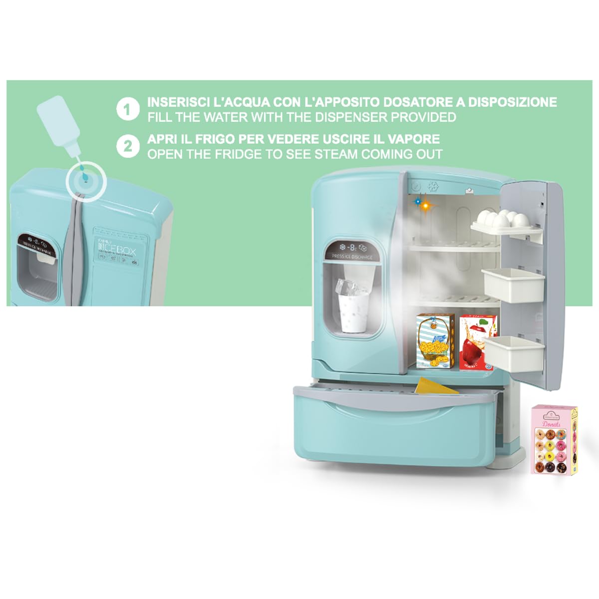 ODS - Maisonella, jucărie de frigider de lux cu lumini, sunete și efect de abur la deschidere, cu accesorii, dimensiuni 30 x 40,2 x 11,5 cm, vârstă recomandată: 3 ani