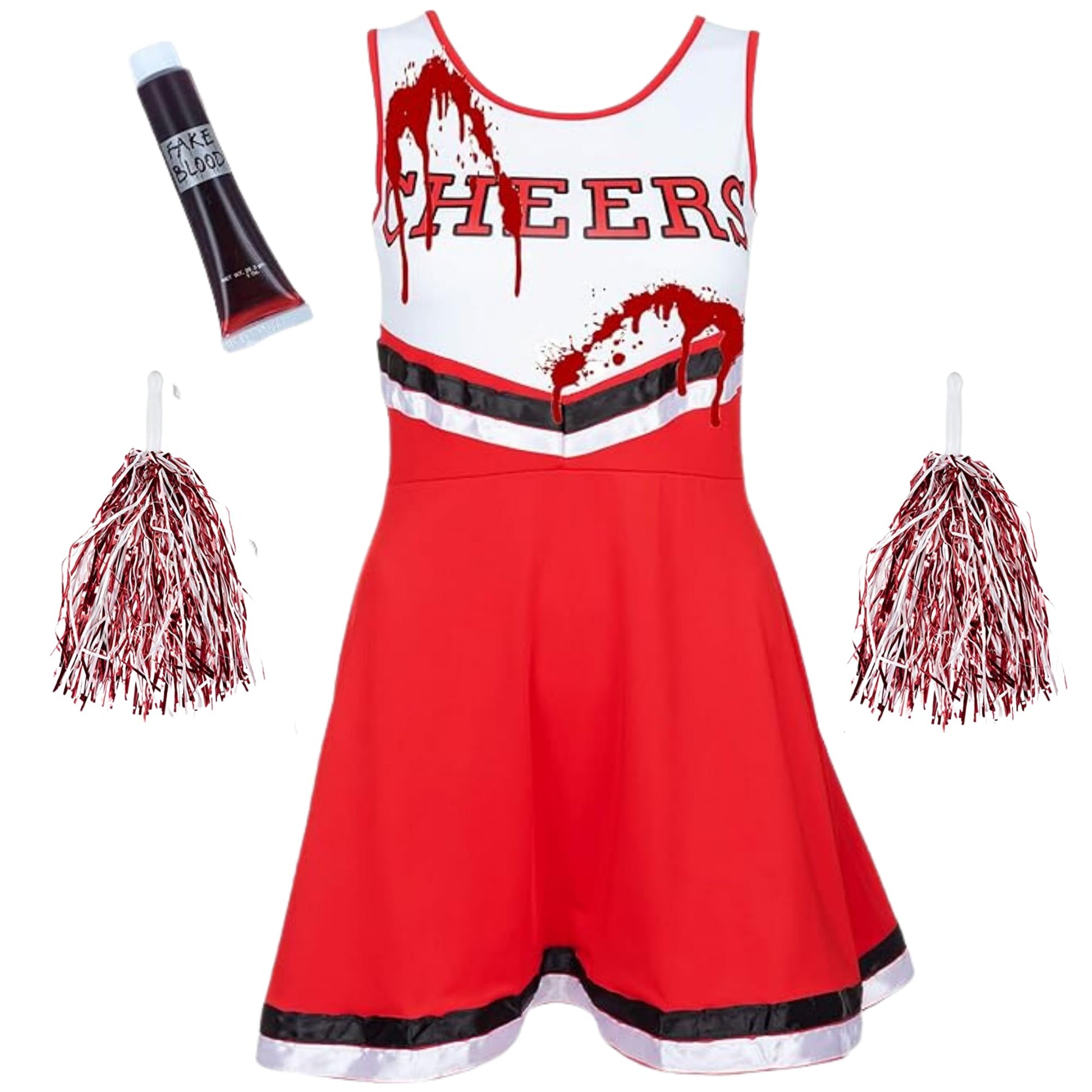- Costum de cheerleader zombie pentru adulți de Halloween: un costum complet de cheerleader pentru femei, ideal pentru cei care caută un costum de cheerleader înfricoșător sau un costum de zombie de carantină.