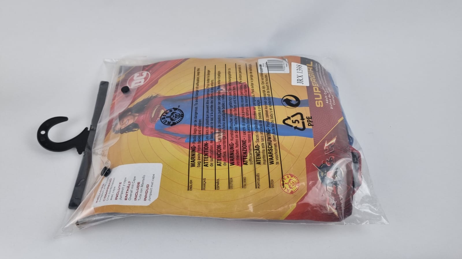 DISFRAZ COMPLET: Acest costum impresionant de Supergirl include un costum imprimat digital în culori albastre și roșii, având emblemă iconică a Supergirl pe torace. De asemenea, vine cu o capa roșie, cu prindere tip velcro pe umeri. Închidere cu velcro la spate pentru o îmbrăcare ușoară, livrat într-o pungă cu umeraș.