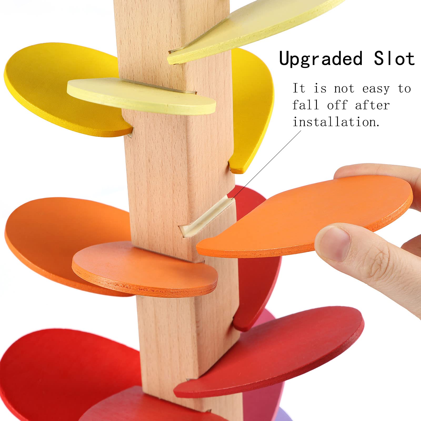 - Jucărie din lemn sigură: Copacul muzical din lemn este fabricat din lemn natural de înaltă calitate, care este robust, inodor și netoxic. Marginea și suprafața sunt suficient de netede pentru a preveni rănirea copiilor. Notă: Deoarece frunzele nu sunt fixate, dacă trebuie să le mutați după asamblare, vă rugăm să fiți atenți, frunzele pot cădea și va trebui să ajustați poziția acestora.