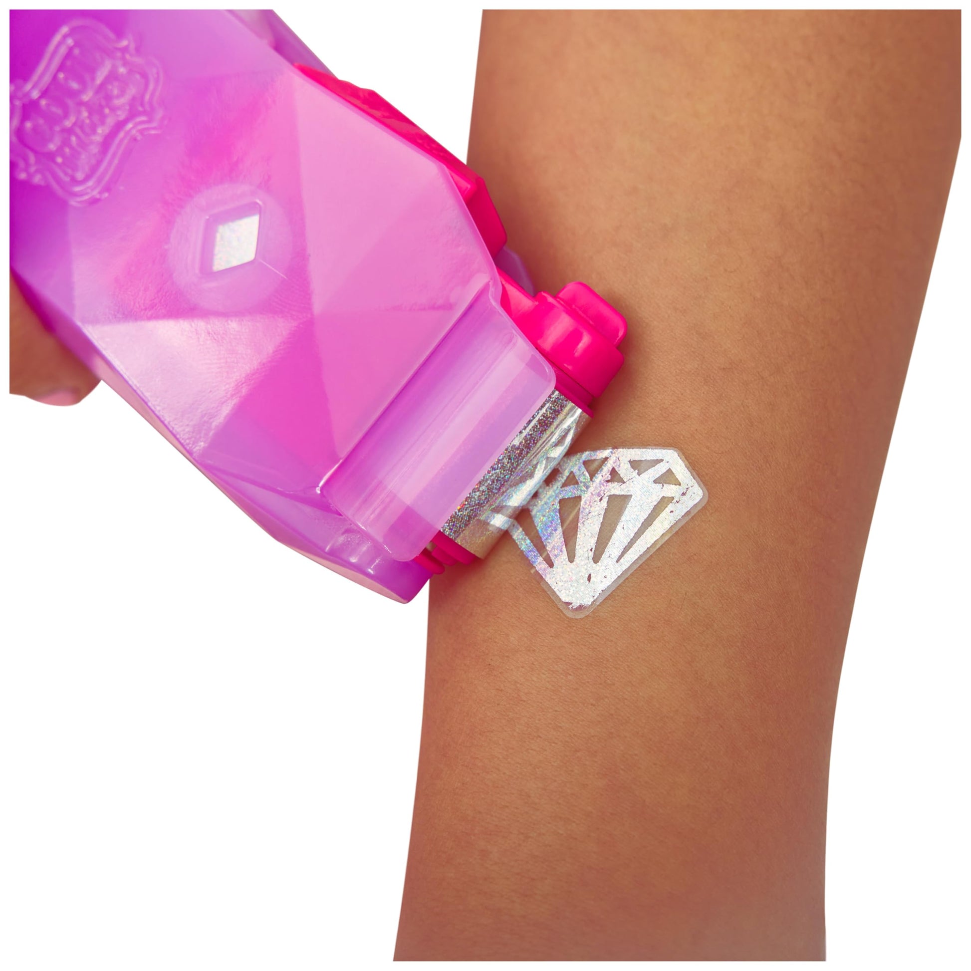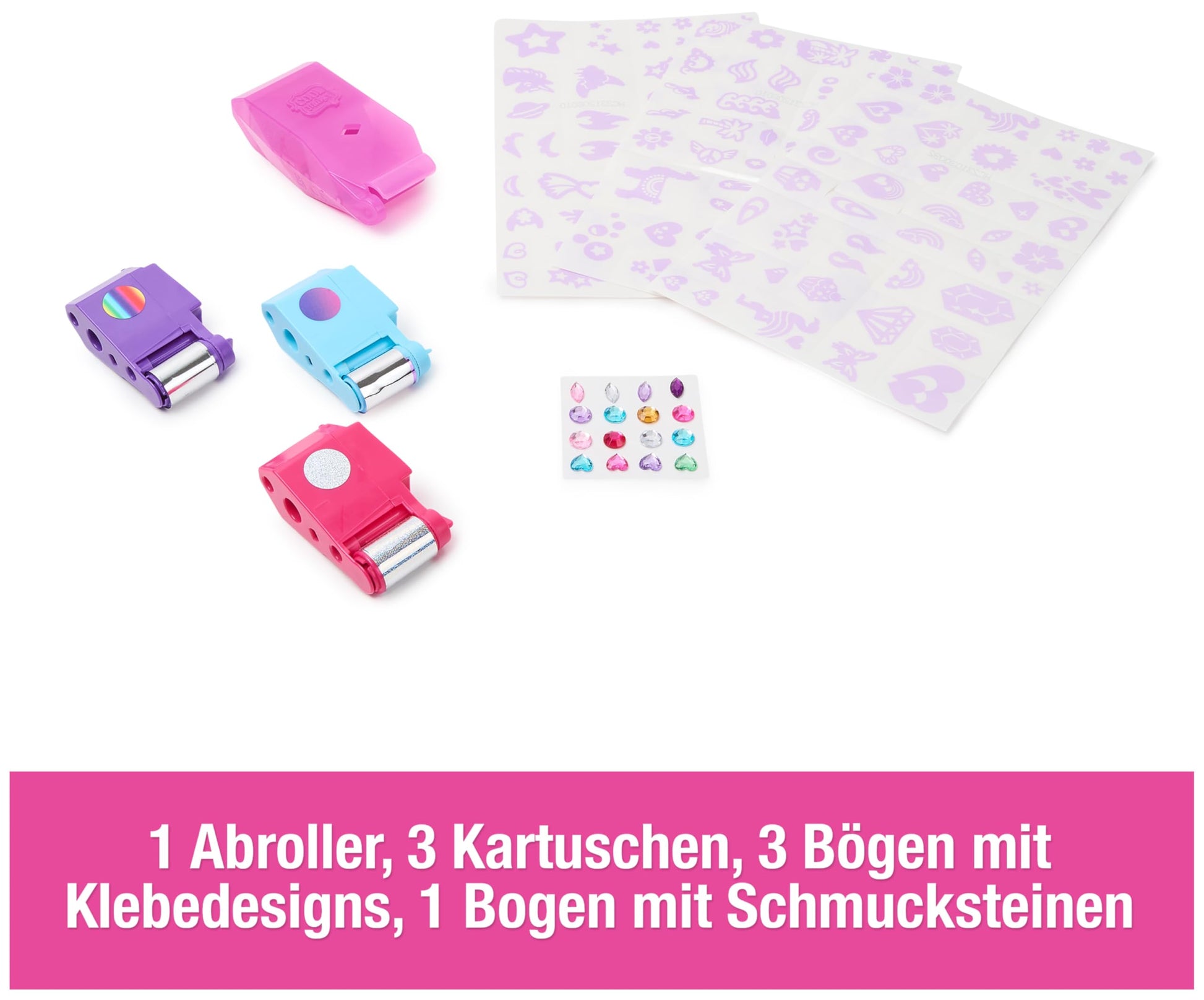 - Crează cu ușurință și personalizat autocolante cu tatuaje strălucitoare: alege designul autocolantelor, lipește-le pe piele și rulează una dintre cele trei folii metalice strălucitoare deasupra.