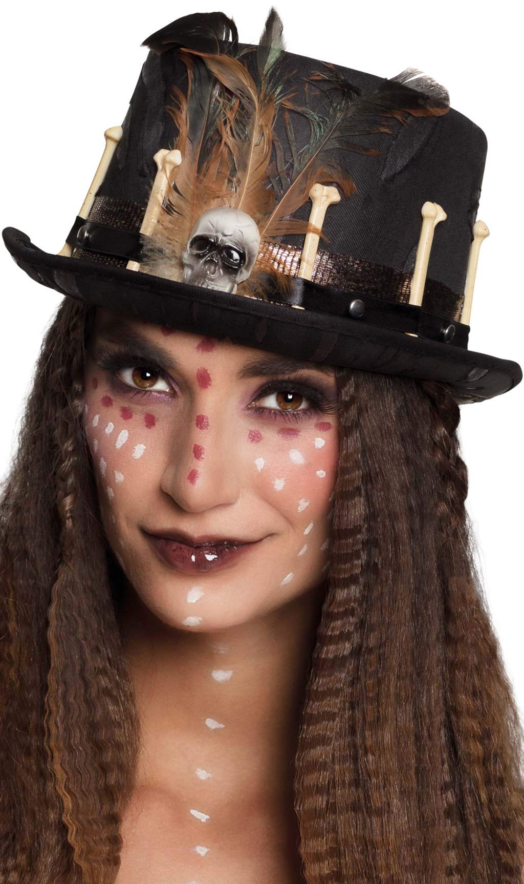 Boland 72181 - Hut Voodoo Nana, cilindru cu oase, pene și craniu, pălărie, vindecător minunat, costum, carnaval, petrecere tematică