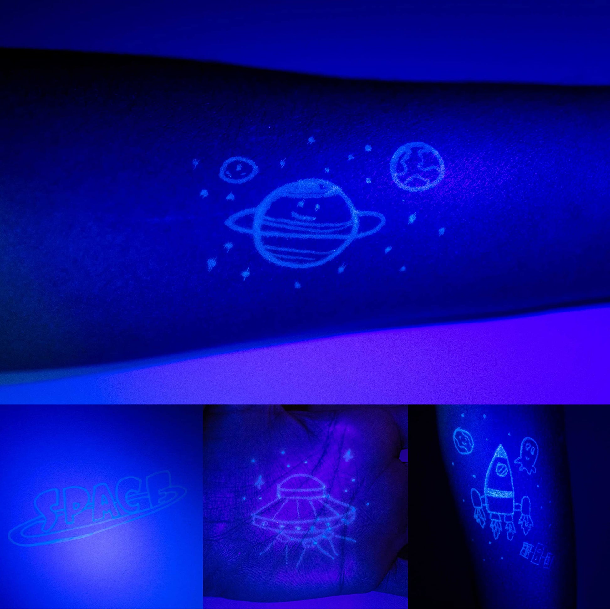 - 👨🏼🚀 FOARTE AMUZANT 👨🏼🚀 Stiloul UV cu lampă pentru băieți și fete poate scrie mesaje sau desene secrete în caiete, care pot fi descoperite doar atunci când stiloul este expus la lumină ultravioletă. Ideal pentru a fi oferit ca dar invitaților sau ca decor pentru petreceri de naștere cu tematica spațială pentru băieți și fete. O alegere foarte accesibilă pentru umplerea punguțelor de petrecere pentru copii, pentru a impresiona băieții și fetele. Idei pentru umplerea calendarului de Advent.