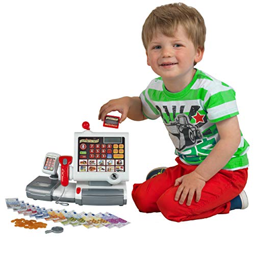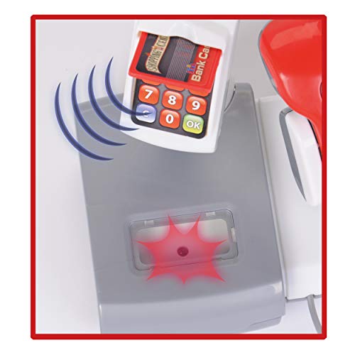 - Funcții realiste: Caseta de marcat emite sunete și lumini, având un scanner care se iluminează și un buton care produce un sunet caracteristic. Totodată, greutatea, tastatura și caseta de deschidere oferă o experiență autentică de cumpărare.