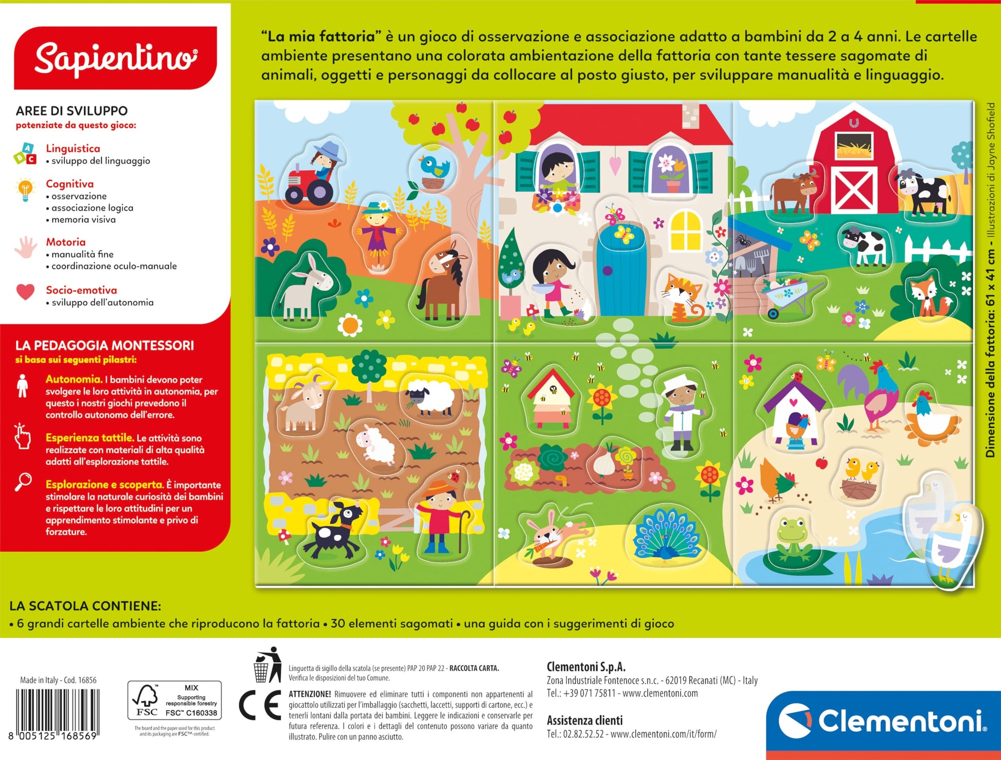 Clementoni Sapientino Montessori - Ferma Mea, Joc educativ cu animale puzzle pentru copii 2-4 ani, Dezvoltarea limbajului și abilităților tactile, Fabricat în Italia, cod 16856