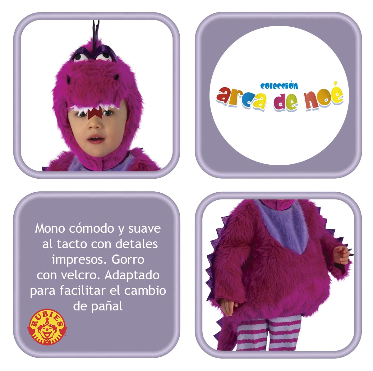 - Bodi Confortabil: Bodiul este confortabil, moale la atingere și călduros, cu un design de dragon mov și pantaloni cu dungi cu picioare. Datorită deschiderii în zona scutecului, acest costum este adaptat pentru a facilita schimbarea scutecului. Fabricat din poliester și proiectat în Spania.