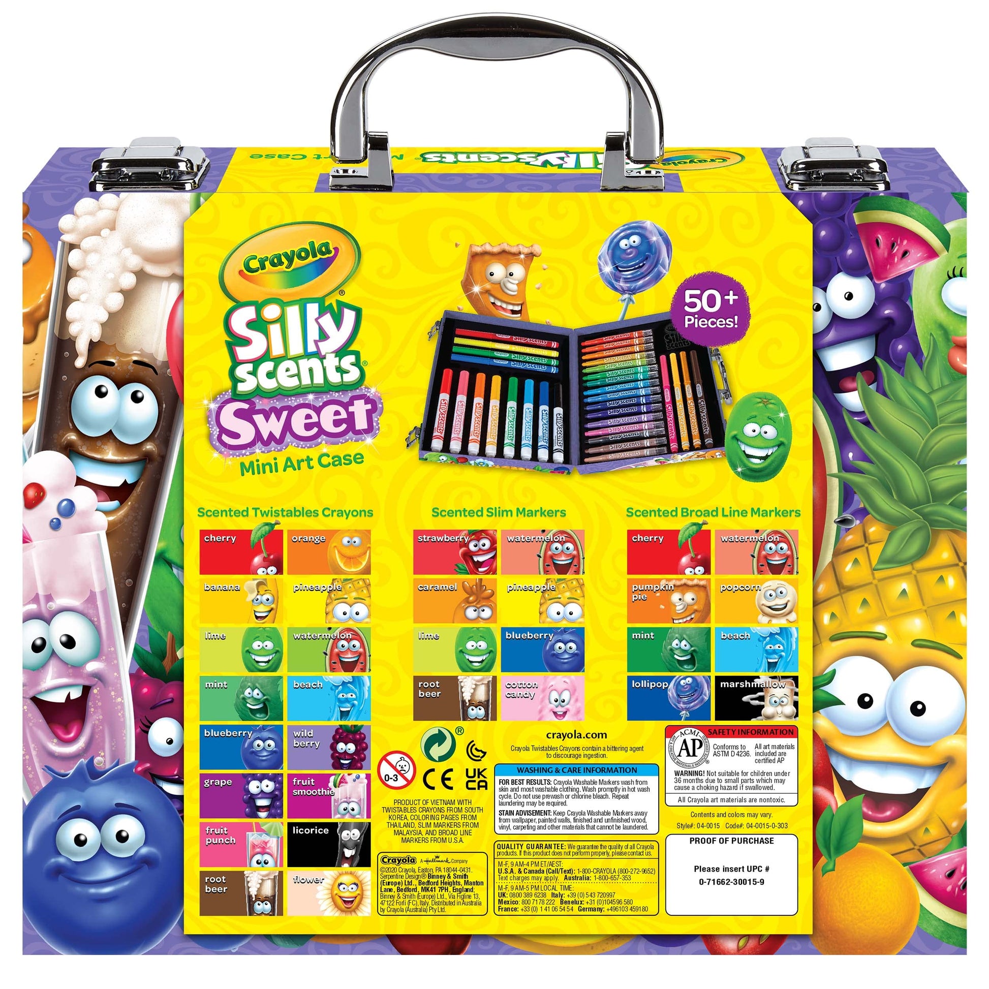 Crayola: Creativitate și fantezie. Indiferent de materiale, unelte, activități sau jucării, Crayola oferă tot ce este necesar pentru a stimula și încuraja creativitatea copiilor. Instrumentele permit copiilor să își dea viață imaginației – inspirația principală din spatele filozofiei Crayola. Ești pregătit pentru noi aventuri artistice? Cu setul de markere parfumate Crayola Silly Scents, copiii sau adolescenții tăi au tot ce le trebuie pentru a desena în siguranță și cu multe culori. Cu acest fantastic set de 32 de markere netoxice, copiii tăi pot lăsa creativitatea să zburde oriunde și oricând. Markerele Crayola sunt netoxice și au fost special concepute pentru copii de la 3 ani, dar și pentru adolescenți, astfel încât pot fi folosite fără griji pentru sănătate. Fiecare marker colorat conține cerneală netoxică, iar datorită vârfului conic, grosimea liniei poate fi ajustată în funcție de unghiul markerului. Pentru o linie fină în poziție verticală și o linie groasă în poziție înclinată. Atât creioanele cerate, cât și markerii sunt parfumate, făcând desenatul și pictatul și mai captivante. Cutia practică, sortată pe culori, conține 16 creioane cerate Silly Scents cu mecanism de rotire, 8 markere subțiri Silly Scents, 8 markere groase Silly Scents și 20 de foi de hârtie pentru colorat. Se spală ușor, astfel că nu trebuie să îți faci griji pentru hainele noi, mobilier, podele sau pereți. Markerele colorate sunt excelente pentru a dezvolta abilitățile motorii și exprimarea creativă. Caracteristici: - Dimensiuni: 26,4 x 22,9 x 5,1 cm - Materiale: netoxice, lavabile - Produs destinat copiilor de la 3 ani - Nu este potrivit pentru copii sub 36 de luni - A se folosi sub supravegherea adulților
