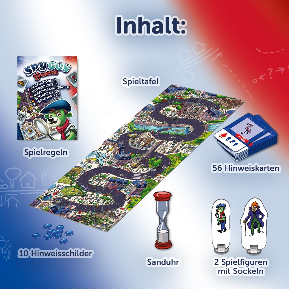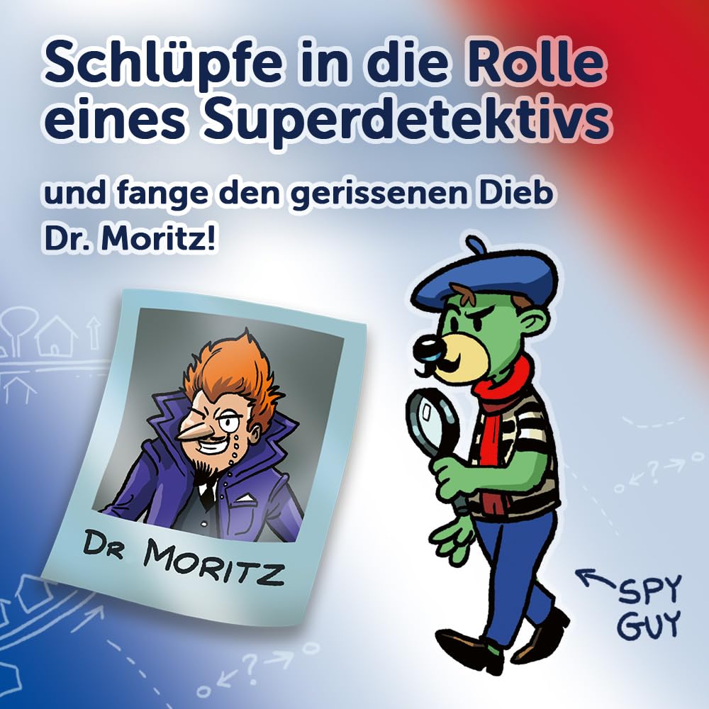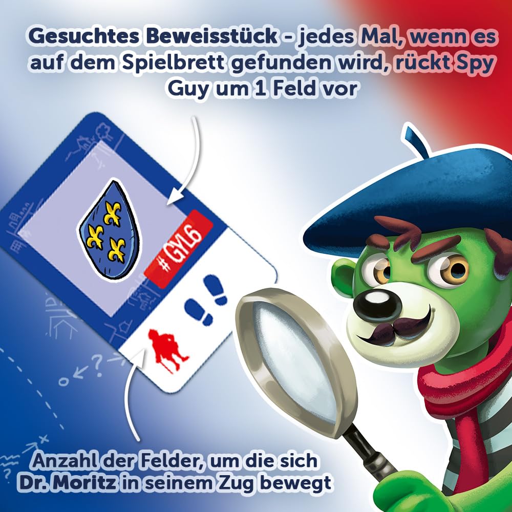 Spy Guy Franța este o variantă a jocului de detective cooperativ, plin de monumente și simboluri legate de istoria franceză. Doctorul Moritz, maestrul viclean al criminalilor, a furat cel mai bine păstrat secret al artei de a face brânză din Franța pentru a-l vinde pe piața neagră. Numai Spy Guy – cel mai bun detectiv din lume – este capabil să-l oprească. Căutați indicii pe tablă de joc gigantică, de peste un metru lungime, și încercați să prindeți răufăcătorul înainte ca acesta să fugă în străinătate cu rețeta prețioasă. Aici contează un ochi ager și o colaborare strânsă între jucători. Jocul de familie este destinat pentru 1-4 persoane cu vârsta de peste 5 ani, iar durata medie de joc este de 20 de minute. Jucătorii care participă la aventura de detective își exersează percepția și abilitățile de colaborare.