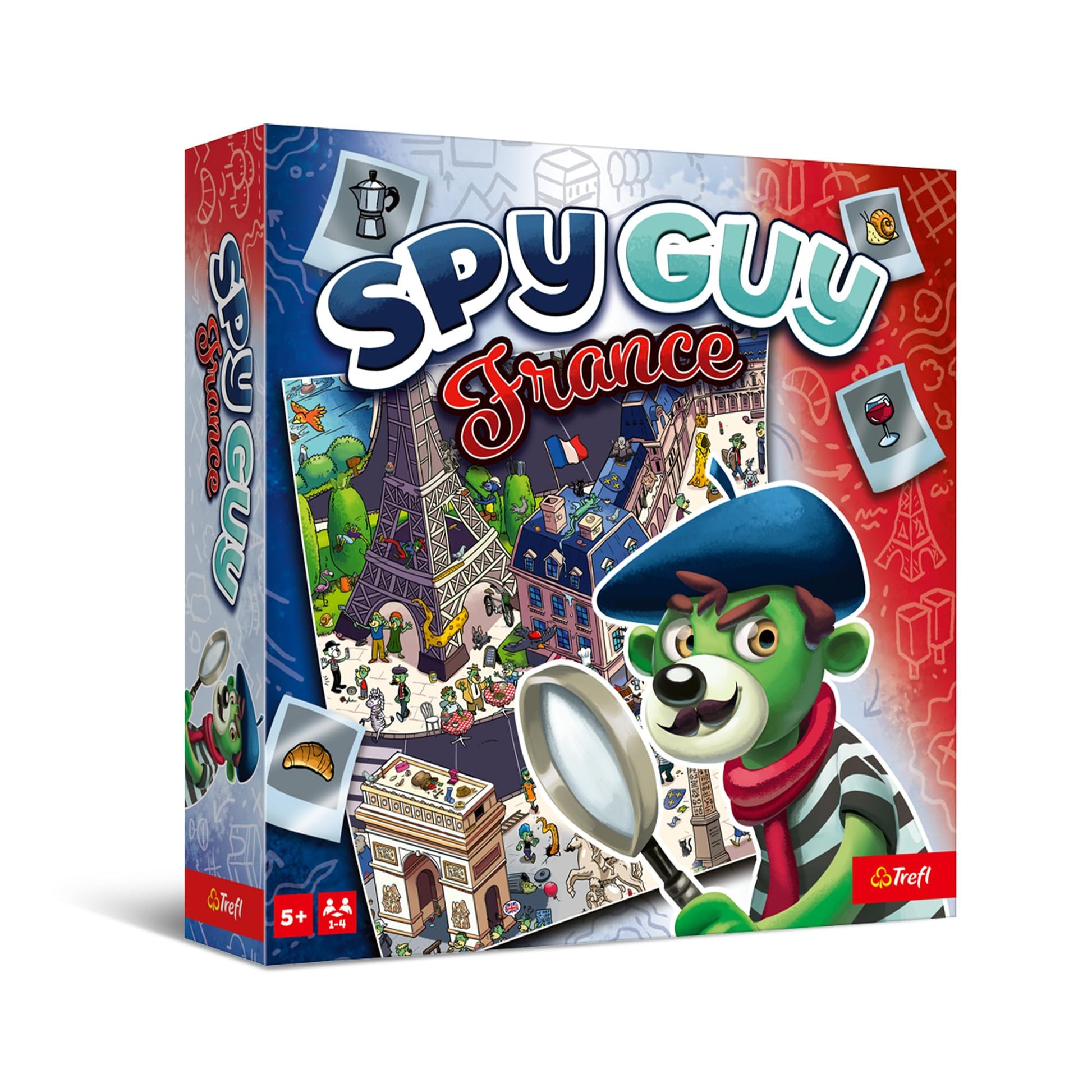 Trefl – Spy Guy France – Joc cooperativ de detectivi, joc de familie, tablă mare cu orașe și simboluri franceze, pentru adulți și copii de la 5 ani.