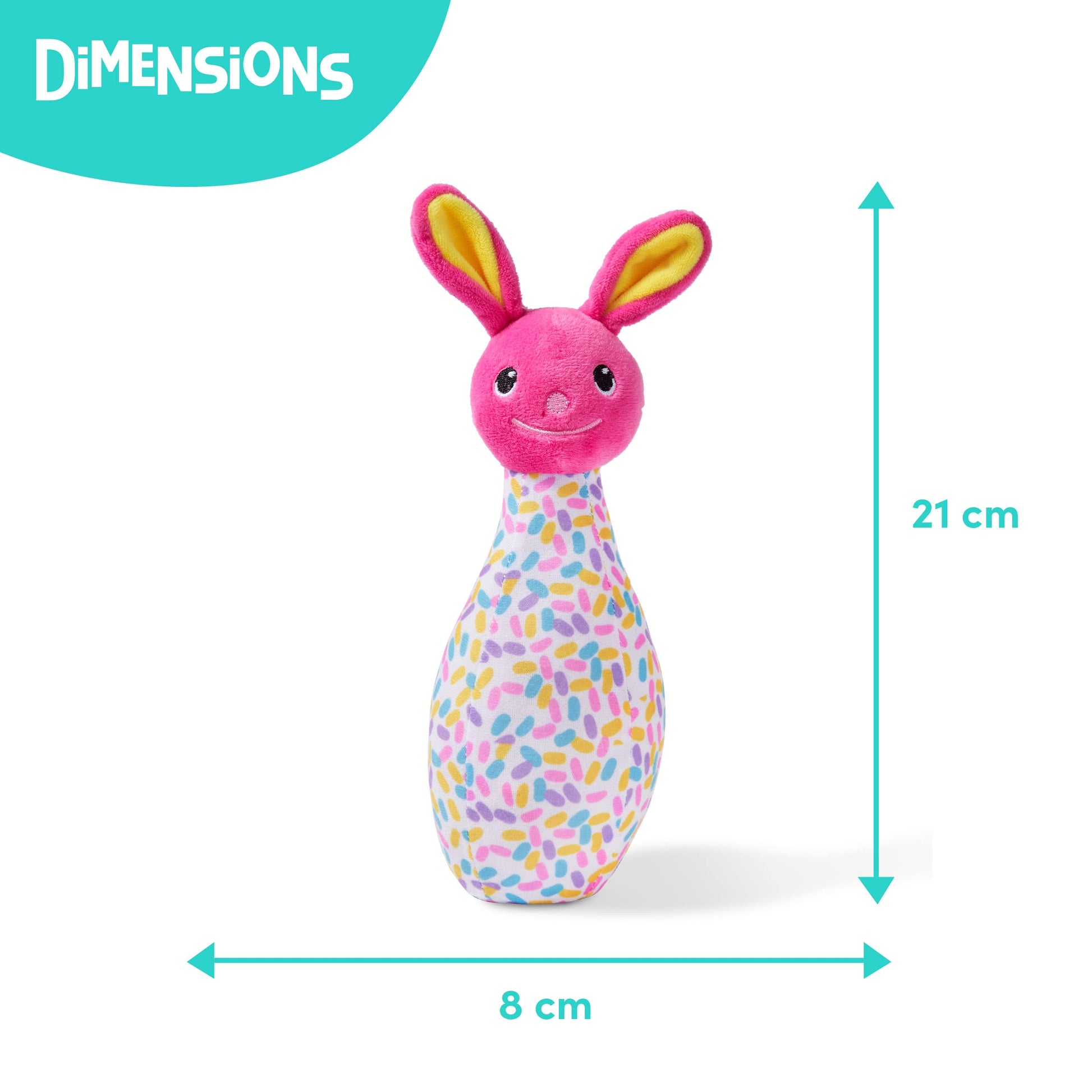Detalii: Transformă timpul de joacă în aventuri pline de bucurie pentru micuțul tău cu setul nostru fermecător de bowling de 7 piese de la Twiddlers! Fabricat cu dragoste și grijă, acest joc este conceput pentru a captiva și a distra bebelușii și copiii mici, încurajând în același timp dezvoltarea lor senzorială și motorie. De ce îți va plăcea: Sigur și confortabil: Fiecare bol și mingea de bowling din pluș sunt fabricate din materiale sigure pentru bebeluși, oferind confort și joacă fără griji. Distracție cu zornăitoare: Bolile au zornăitoare moi în interior, adăugând un element sonor distractiv care menține urechile mici intrigate și încântate. Ușor de manevrat pentru mâini mici: Dimensiunile sunt perfect adaptate pentru a fi apucate și ținute de mâinile mici, încurajând dezvoltarea abilităților motorii fine cu fiecare aruncare. Distracție educativă: Favorizează coordonarea mână-ochi și echilibrul în timp ce micuțul tău învață să țintească, să arunce și să doboare bolile. Ușor de curățat: Lavabil la mașină pentru o curățare fără efort, asigurând o experiență de joacă proaspătă și igienică. De ce să alegi setul de bowling Twiddlers? Transformă timpul de joacă în momente prețioase de învățare și râsete cu setul nostru fermecător de bowling. Fie ca este un cadou pentru un baby shower sau un răsfăț special pentru propriul tău copil, setul de bowling de 7 piese de la Twiddlers promite ore de joacă veselă. Oferă-i micuțului tău darul jocului și descoperirii cu Twiddlers - unde fiecare aruncare este un pas spre amintiri fericite din copilărie!