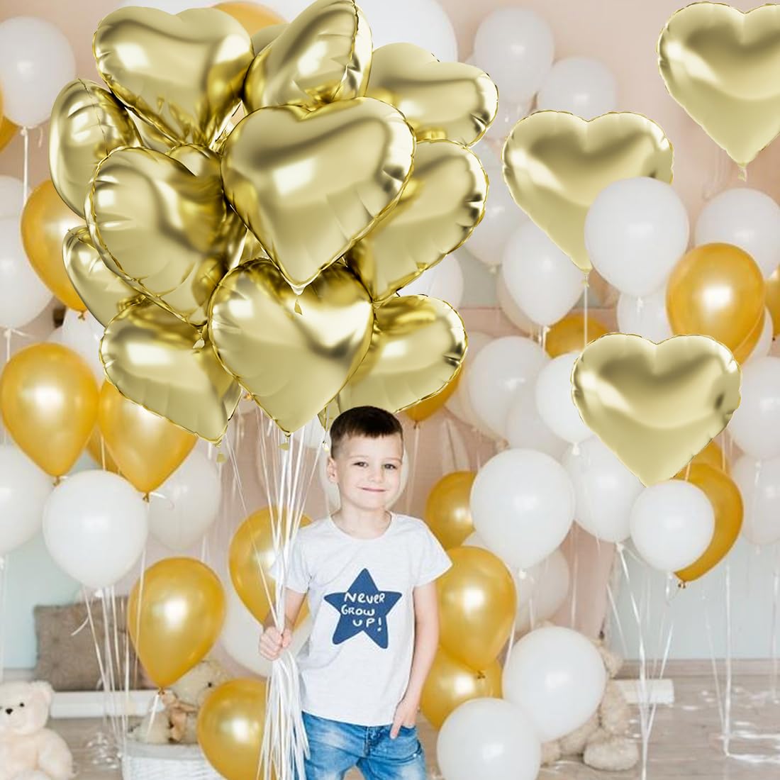 - 💛 Setul conține 20 de baloane din folie în formă de inimă, de culoare auriu deschis, cu dimensiunea de aproximativ 18 inch (45*45 cm)