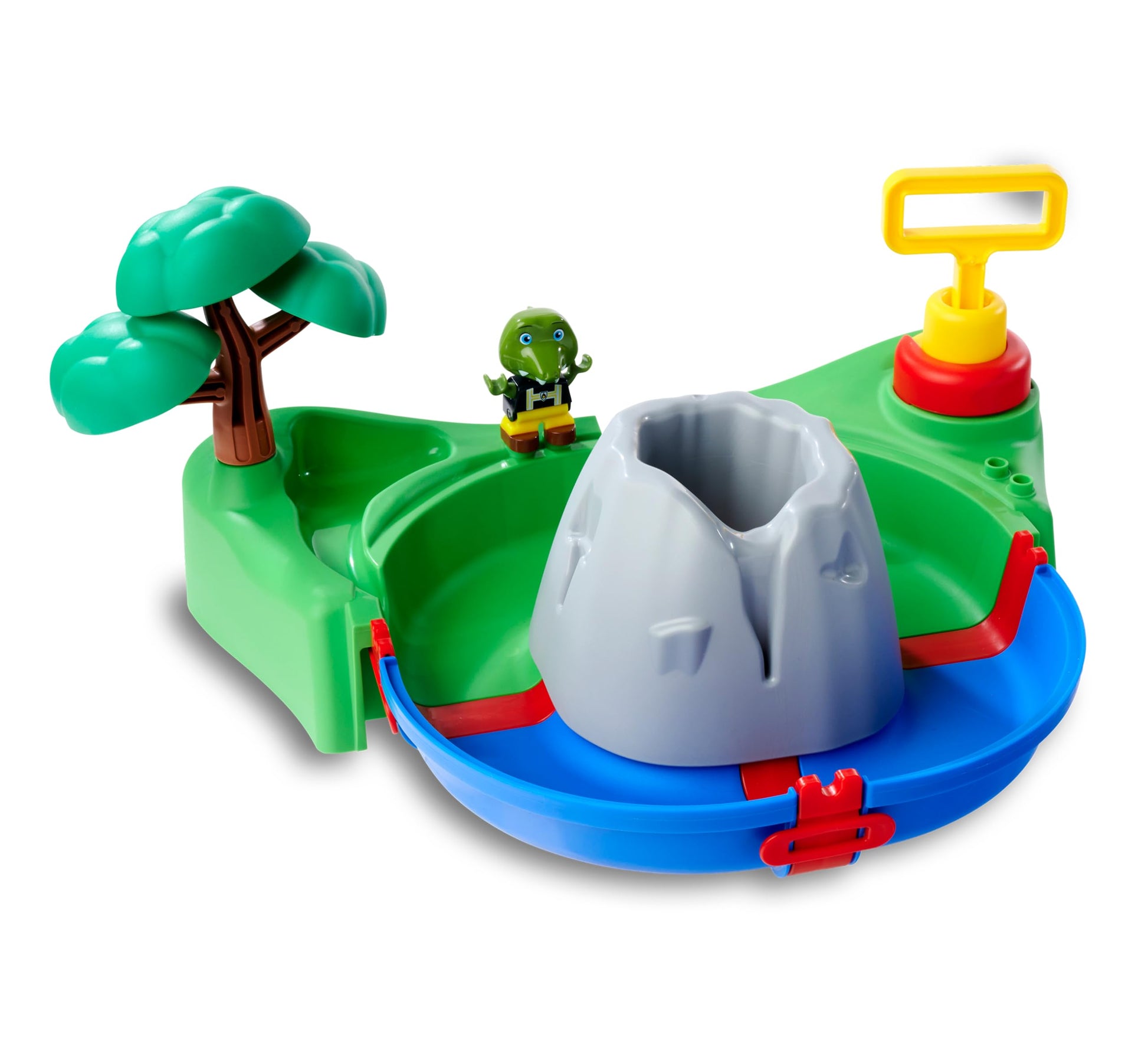 Aventuri spumoase la baie: cu jucăria de apă AquaPlay Sploshy „Vulcan” pentru copii! Această jucărie interactivă pentru cada de baie transformă orice cadă într-un peisaj vulcanic spumos și îi încurajează pe copii de la 18 luni să exploreze și să experimenteze creativ. Fie că este în cadă, la duș, pe balcon sau terasă: Ventuzele practice permit o fixare simplă și stabilă a jucăriei pentru copii pe sticlă sau plăci. Mașină de spumă inovatoare în design de vulcan Setul de joc constă dintr-o pistă circulară de apă, care este alimentată de un mic lac cu apă, generând astfel curent în pistă: condițiile perfecte pentru a-l lăsa pe Sven, crocodilul, să navigheze cu barca prin pistă! Dar punctul culminant al setului de joc cu apă se află adânc ascuns în vulcanul din mijlocul stației de apă: Mașina de spumă! Tot ce trebuie să faceți este să adăugați apă și șampon în vulcan, să acționați pompa de pe marginea pistei de apă și astfel lava spumoasă va erupe! Efectul de spumă este generat exclusiv manual prin pompa de aer și funcționează fără baterii. Fabricat în Germania Jucăria de apă este realizată în Germania din material rezistent la UV - cu garnituri atent concepute care sigilează pista etanș. Pe lângă barca cu Sven, crocodilul, se livrează o stropitoare pentru transportul apei și un copac decorativ ca accesorii pentru a face lumea apei și mai interesantă. Aceasta poate fi extinsă suplimentar cu alte piste de apă și piese de accesorii de la AquaPlay Sploshy. AquaPlay – piste de apă puternice pentru joacă Cu AquaPlay, distracția cu apă revine în grădina de acasă - și acum și în baie! Din 1977, AquaPlay produce sisteme de piste de apă pentru copii. Produsele sunt testate regulat de institute independente.