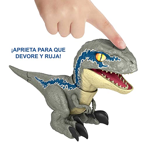 Intră în lumea sălbatică cu aceste figurine de dinozaur Uncaged Rowdy Roars, inspirate de aventurile palpitante din Jurassic World: Dominion. Această figură interactivă a velociraptorului Beta face ca relația dintre oameni și dinozauri să fie și mai apropiată, activându-se la atingere și putând să se MIȘTE, MORDĂ și RUGĂ. Privirea sa intimidează și are un design, culori și texturi stilizate, fiind o adăugare excelentă pentru a oferi un aspect sălbatic oricărei colecții de dinozauri. O palmă pe cap îl face să înceapă să muște și să răcnească într-un mod imprevizibil! Copiii pot mângâia partea de jos a bărbiei figurii pentru a o face să se aplece spre ei în timp ce emite sunete. Această figură în special poate părea familiară, dar este inspirată de un nou și interesant dinozaur din filmul Jurassic World: Dominion. Acest jucărie electronic măsoară aproximativ 18 cm înălțime și este un cadou minunat pentru iubitorii de dinozauri curajoși de la 4 ani în sus. Culorile, dimensiunile și decorarea pot varia.