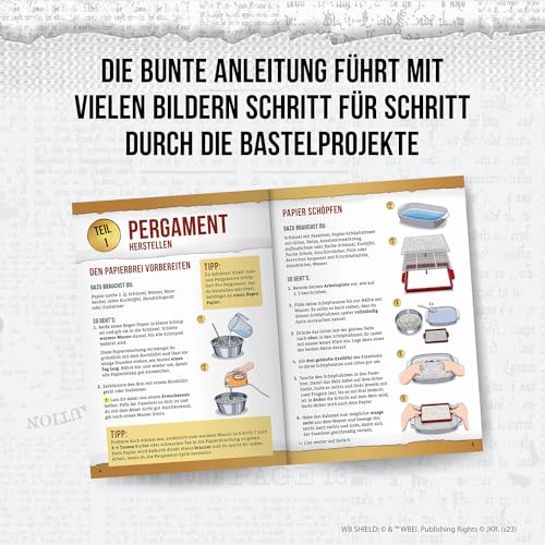Bine ai venit în Hogwarts™! Cu acest kit AllesKönnerKiste, copiii de peste 8 ani pot crea cu ușurință pergamente și sigilii acasă: cu cadrul practic, ei pot crea hârtie și continua să creeze. Un aspect special pentru fanii Harry Potter™: cu sigiliul autentic Hogwarts™ și masa de sigilare prietenoasă cu copiii, se pot sigila scrisori secrete, documente oficiale sau felicitări! Fie că recreează Jurnalul lui Tom Riddle™ sau un Howler propriu, aici te așteaptă multe proiecte magice de craft pentru fanii mari și mici ai Wizarding World™. WIZARDING WORLD și toate mărcile comerciale, personajele, numele și indicii asociate © & ™ Warner Bros. Entertainment Inc. Drepturi de publicare © JKR. (s23)