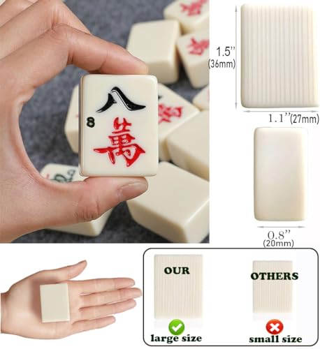 - Setul de Mahjong chinezesc conține 146 de piese de culoare fildeș, dimensiuni 3.6 x 2.7 x 2CM, plăcile mari sunt mai confortabile