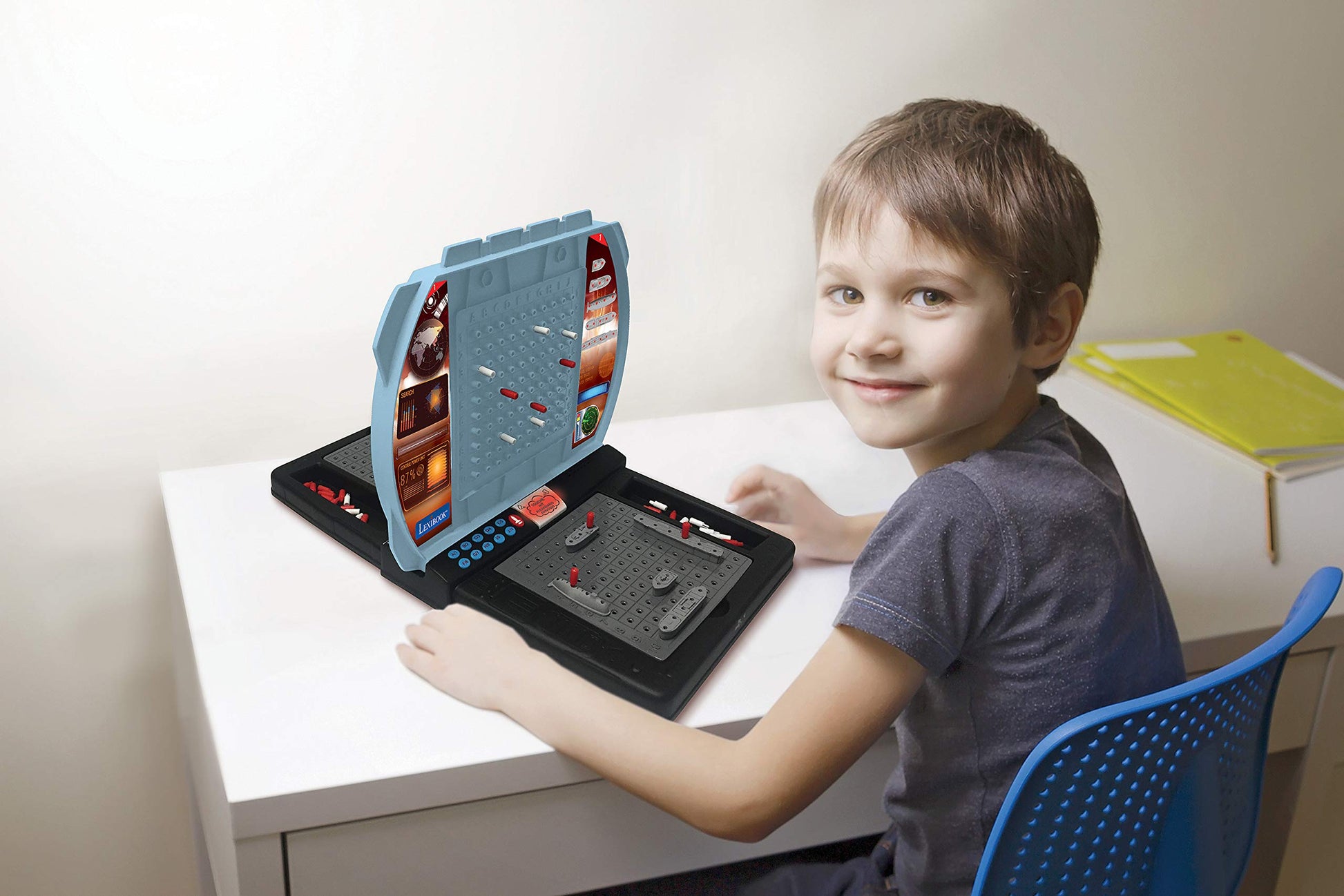 Lexibook - GT2800 Bătălia Maritimă Vorbitoare (Franceză, Italiană, Olandeză, Germană), Joc de Masă Interactiv pentru 1 sau 2 Jucători, cu Efecte Sonore, Strategie, Funcționează pe Baterii, Gri/Negru