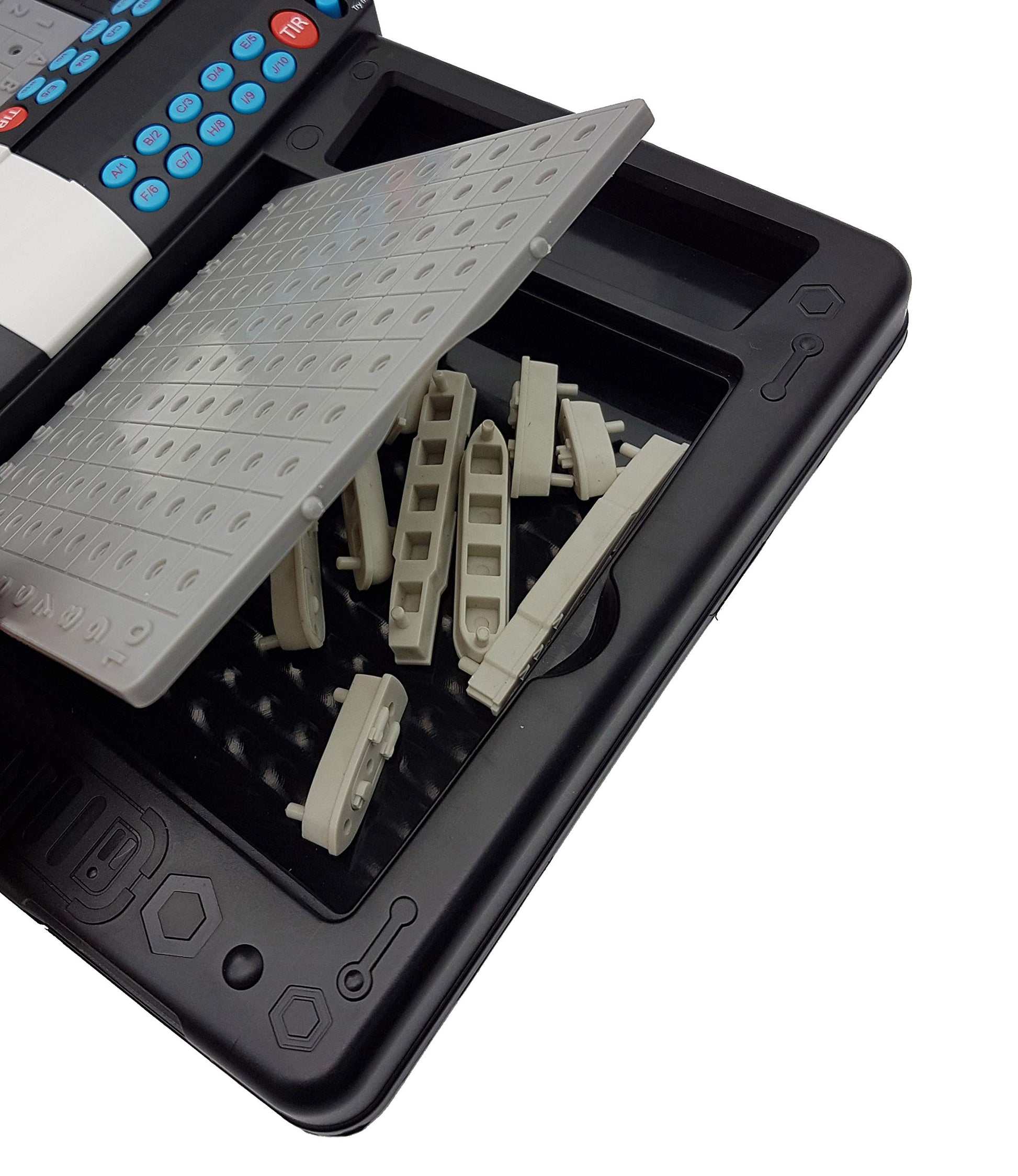 "O bătălie navală electronică vorbitoare cu efecte de lumină și sunet ultrarealiste! 1 până la 2 jucători: joacă împotriva computerului sau provoacă un prieten! Scopul jocului: să scufunde primul cele 5 nave ale adversarului. 2 niveluri de joc: mod normal sau mod greu, în care computerul nu indică ce navă este lovită. 4 limbi: franceză, italiană, olandeză și germană. Sunete de luptă realiste care reflectă situația de joc (pregătire, focuri, țintă ratată, lovit, scufundat), pentru a trăi intens bătălia. Lumină intermitentă atunci când o navă este lovită sau scufundată. Oprire automată. Spațiu de depozitare sub grilele oceanice. Cutia conține 2 grile oceanice, 2 grile de țintă, 10 nave, 80 plăcuțe roșii, 200 plăcuțe albe și un ghid cu regulile jocului. Alimentare: 3 baterii AA/LR6 1,5 V (inclusă). Garanti: 2 ani - Proiectat și dezvoltat în Europa - Fabricat în China".