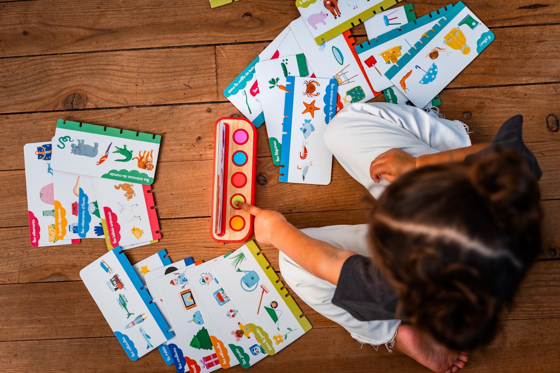 Primul creator de imagini este destinat copiilor de la 18 luni. 250 de cuvinte de descoperit cu sunete de animale și diverse sunete. Copilul alege o carte, apasă un buton pentru a auzi cuvântul: Pasărea, cui-cui. Stârnește curiozitatea, dezvoltă vocabularul și stimulează limbajul. 25 de cărți frumos ilustrate.