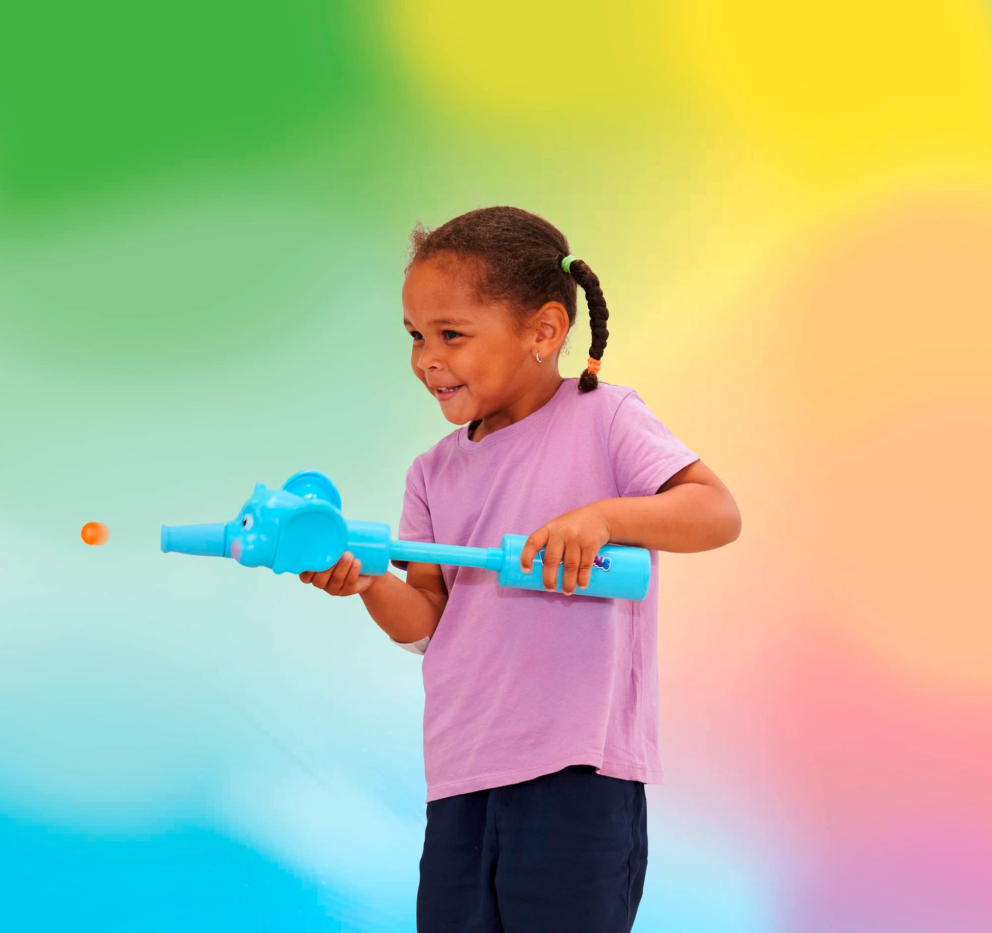 - Parada trompelor amuzante - Setul include 20 de mingi colorate: Prin pomparea mânerului, mingile se deplasează în trompa din silicon. Aceasta se umflă înainte ca mingile să fie catapultate din trompă.