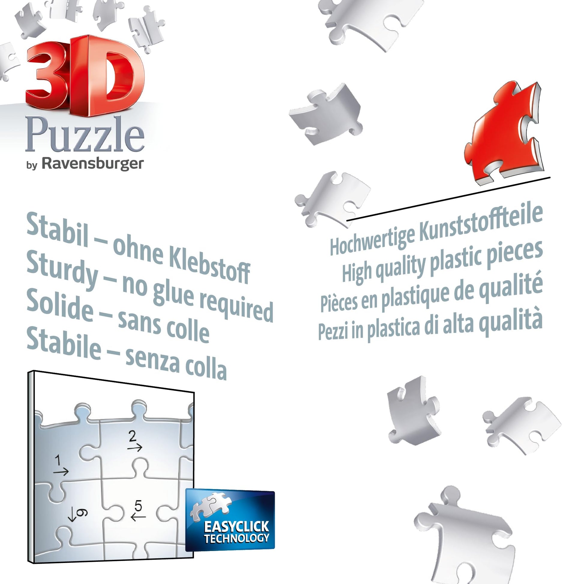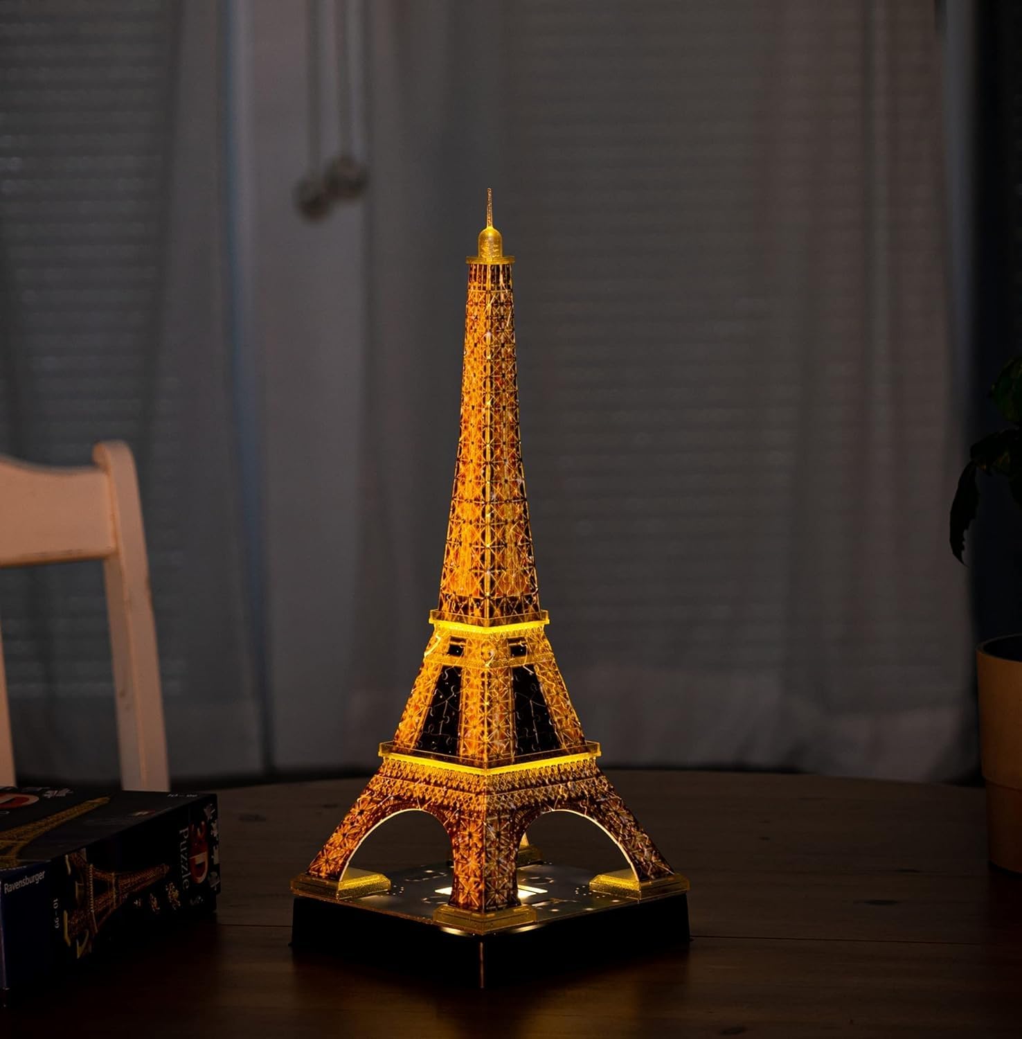- Cu acest puzzle 3D de la Ravensburger, copiii și adulții de peste 10 ani pot experimenta o experiență unică de puzzle tridimensional și pot construi și ilumina Turnul Eiffel noaptea cu piese din plastic numerotate.