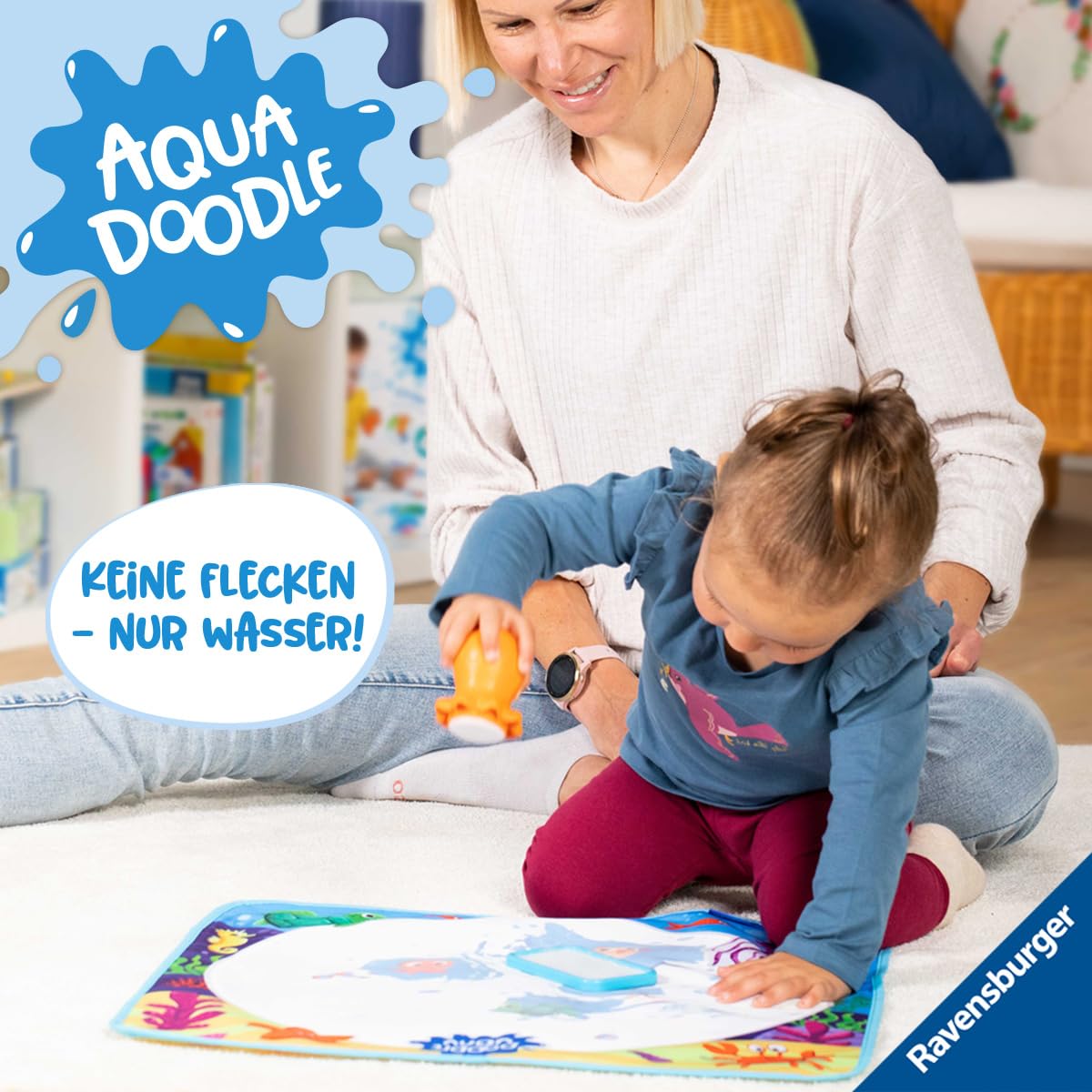 Ravensburger 4568 Aquadoodle Magic Ocean - Stamping și explorare fără pete cu apă - Set de ștampile cu covor magic pentru bebeluși de la 12 luni, jucărie pentru copii de la 1 an