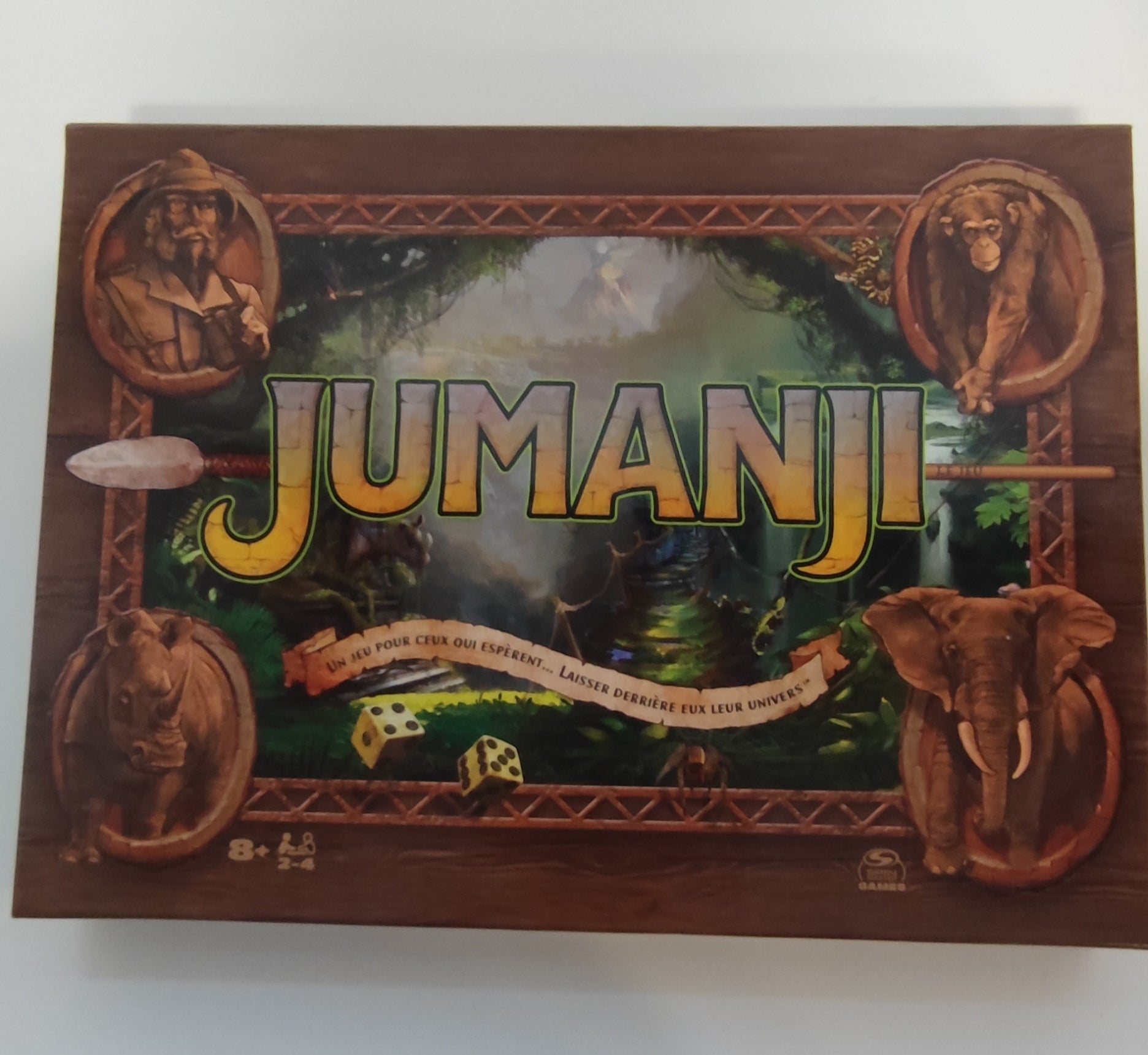 - REEDITARE: Acest joc retro Jumanji este o reeditare pentru a se apropia și mai mult de designul autentic al filmului. Grafica tablei, a cutiei și a elementelor jocului (pioni, ceasuri cu nisip etc.) au fost modificate pentru a se asemăna și mai mult cu cele originale.