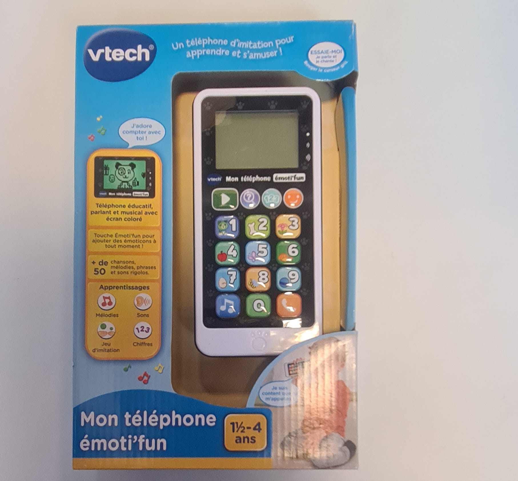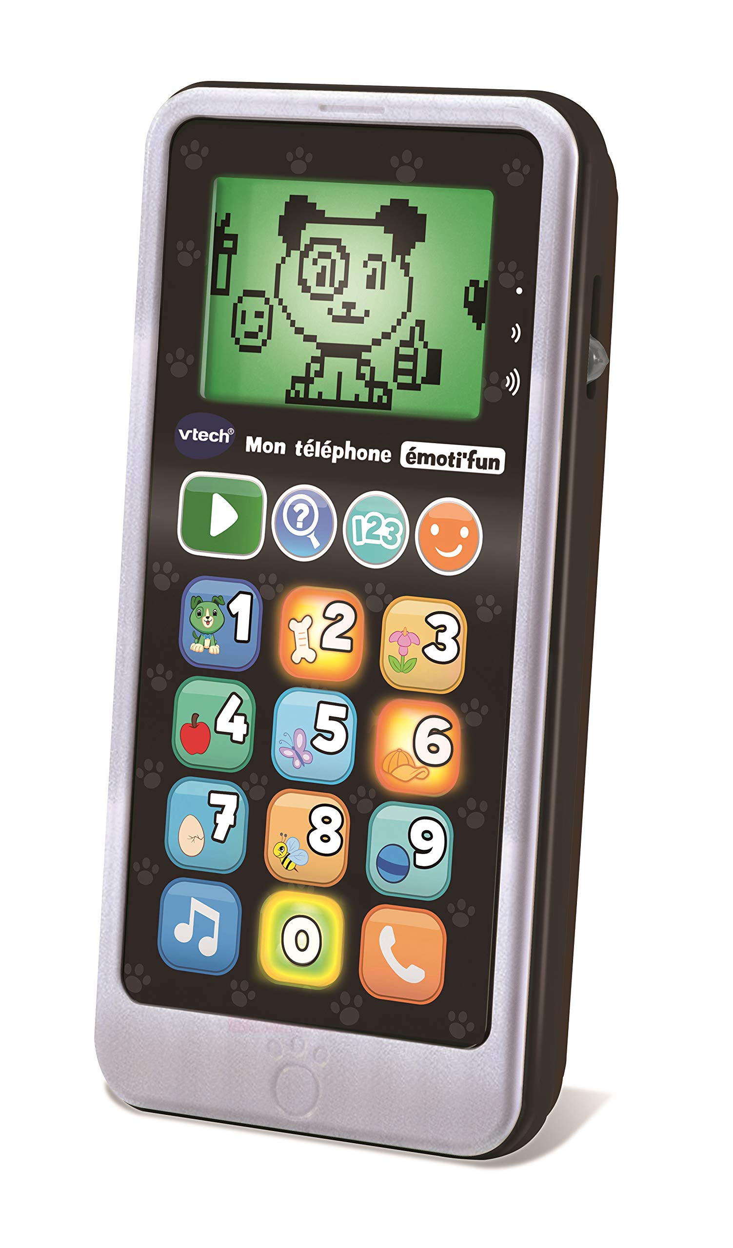 - Descriere produs: Un telefon pentru a învăța în timp ce te distrezi, cu ecran retroiluminat. 12 taste ușoare și tactile. Un buton Emoti'fun pentru a adăuga emoticoane în orice moment. Peste 50 de fraze, cântece, activități și divertisment.