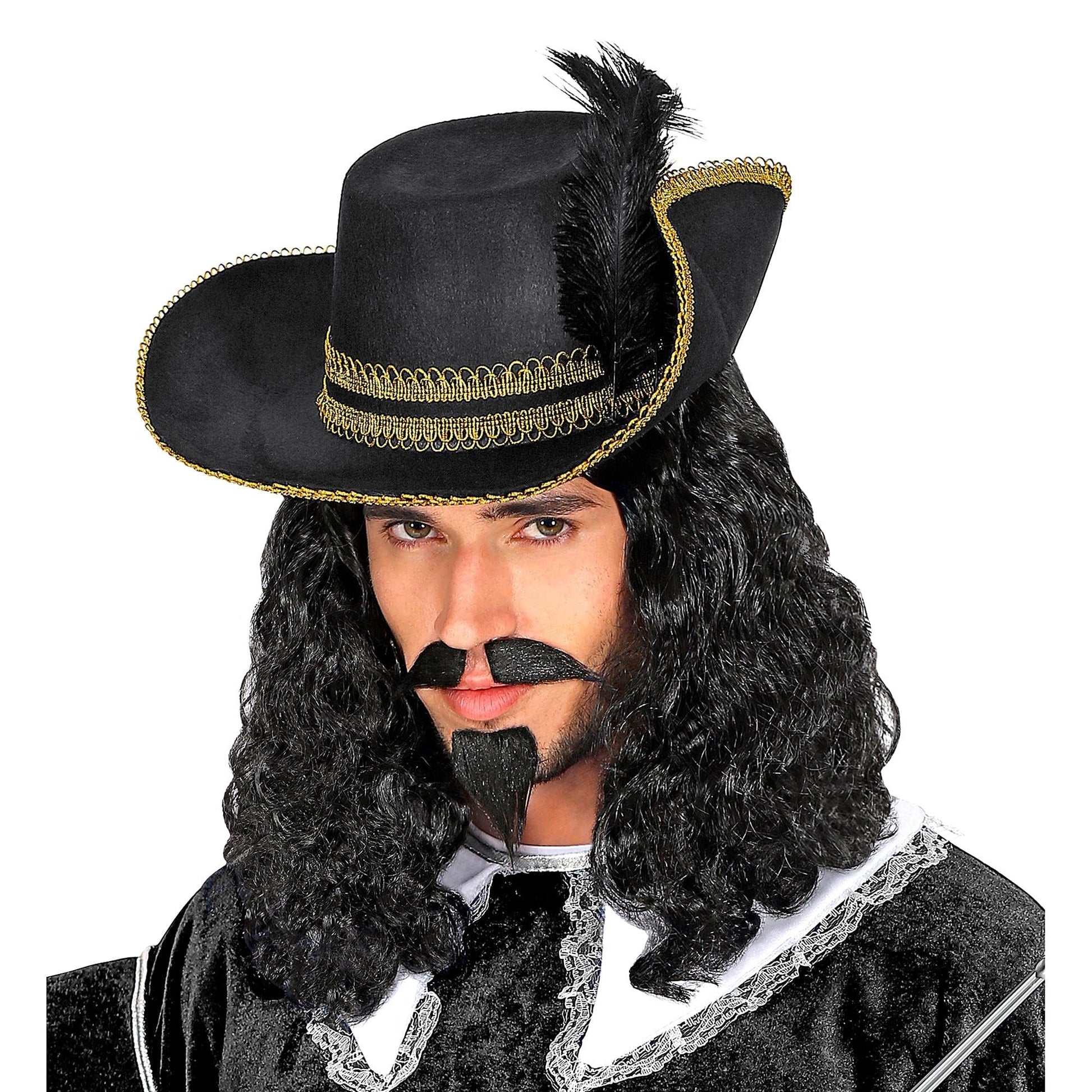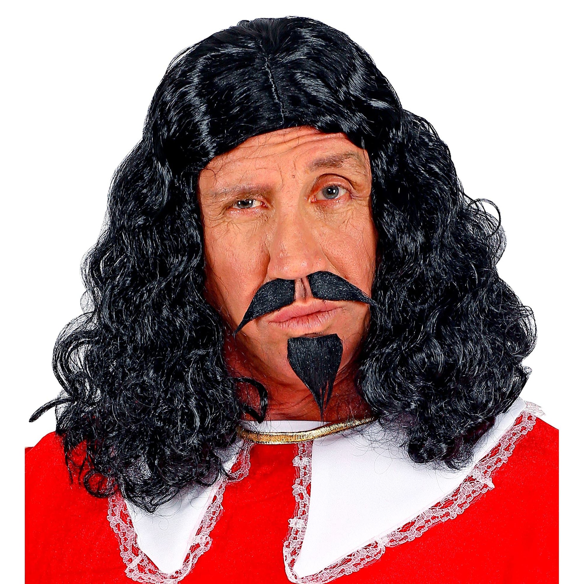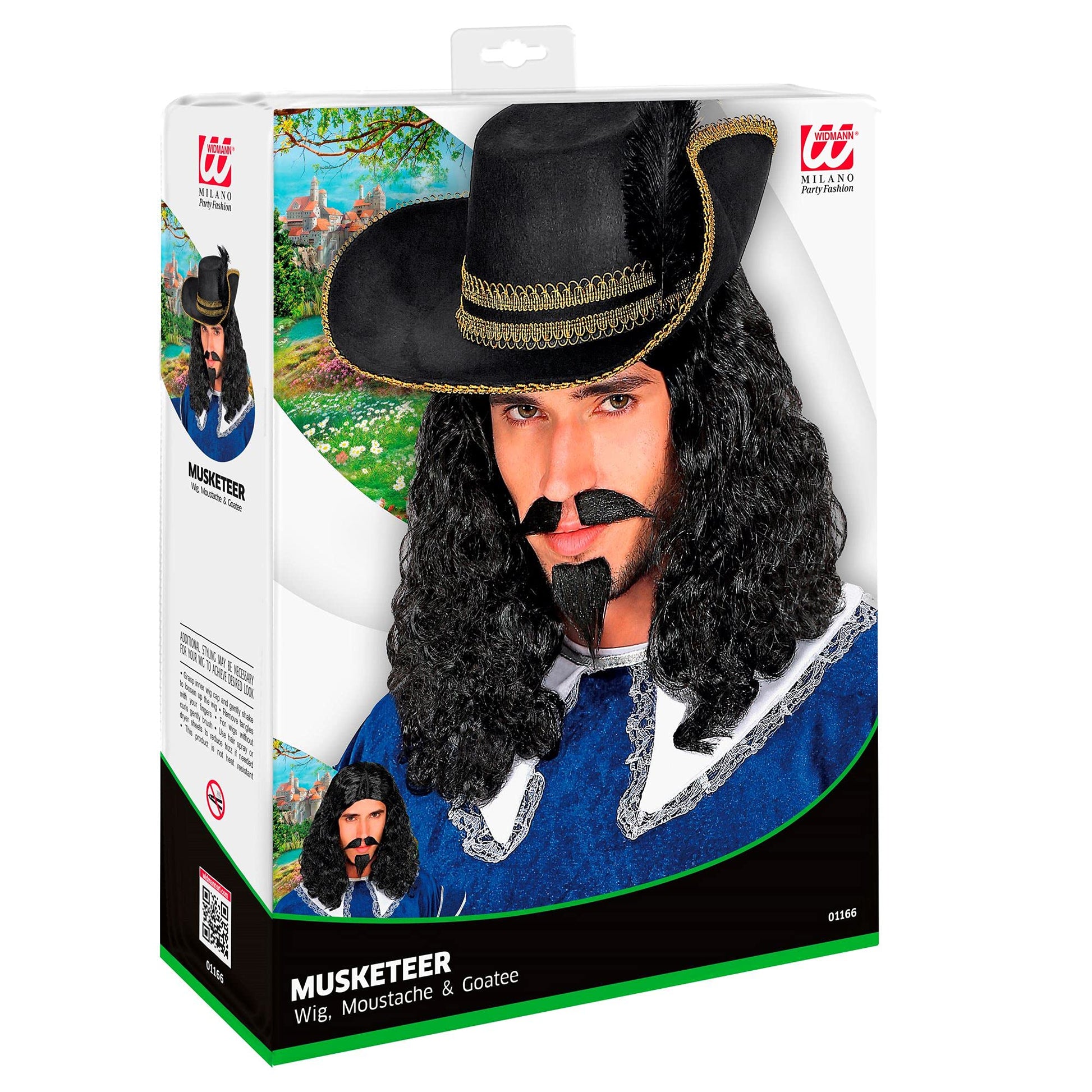 Peruca Musketier neagră cu mustață și barbă - WIDMANN MILANO 01166, pentru carnaval și petreceri tematice