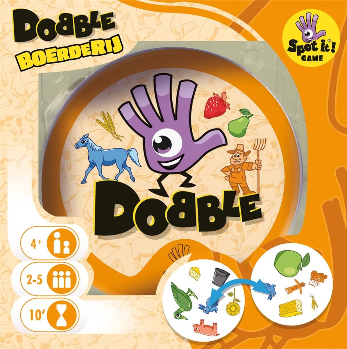 Dobble Farm este un joc de cărți distractiv pentru tineri și vârstnici. În acest joc rapid, jucătorii caută simultan un simbol identic pe două cărți diferite. Viteza, observația și reflexele sunt esențiale pentru a câștiga acest joc! Dobble Farm conține 30 de cărți de joc, fiecare având 6 simboluri. Gândiți-vă, de exemplu, la un tractor, porc, măr, iepure și o moară. Există 5 mini-jocuri diferite pe care le puteți juca, fiecare cu propriile reguli. Cărțile sunt ambalate într-o cutie practică și jocul este, de asemenea, ideal pentru a fi oferit cadou.